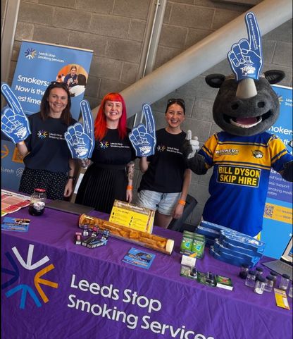 Here we are at the Rhinos stadium for their matches against St Helens and Hull KR! These family-friendly events were a fantastic chance to chat with fans, share stop smoking advice, and raise awareness of our service. The foam hands and beer mats were a big hit too! One of the best moments? A former participant stopped by to tell us she’s still smokefree—a brilliant reminder of why we do what we do!